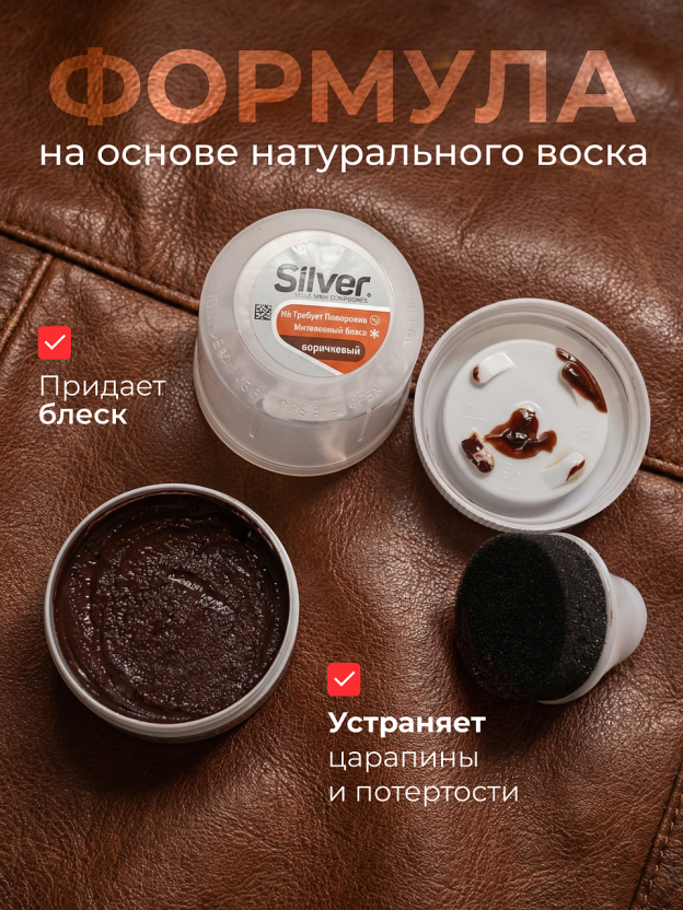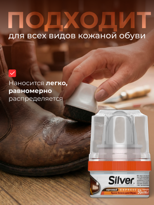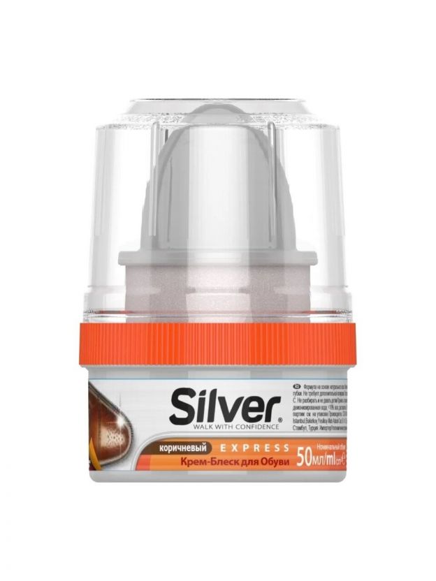 Крем Silver, для обуви, 50 мл, с губкой, коричневый, KS1001-02/KS1001-14