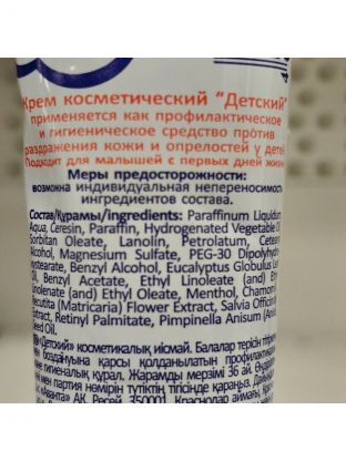 Классический Детский крем. Является отличным защитным средством для кожи, предотвращает раздражения и покраснения; способствует заживлению трещинок и других нарушений кожного покрова; применяется как профилактическое средство от обветривания и опрелостей