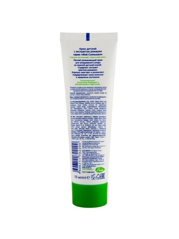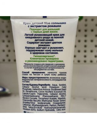 Легкий увлажняющий крем детский с экстрактом ромашки серии "Мое солнышко" для ежедневного ухода за нежной детской кожей. Содержит экстракт цветков ромашки.