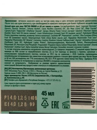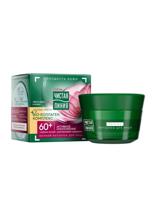 Крем для лица, Чистая линия, Таволга и калина, ночной, 60+, 45 мл