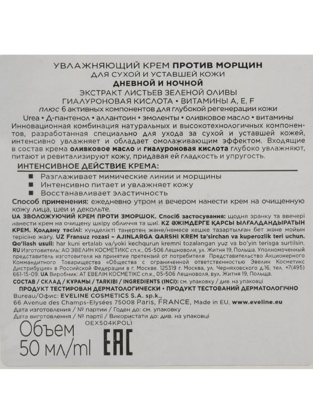 Крем для лица, Eveline, Увлажняющий, для сухой кожи, 50 мл
