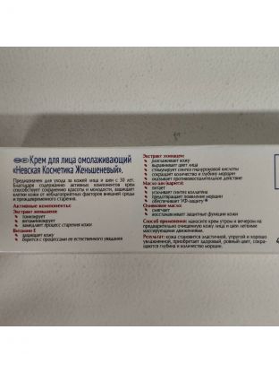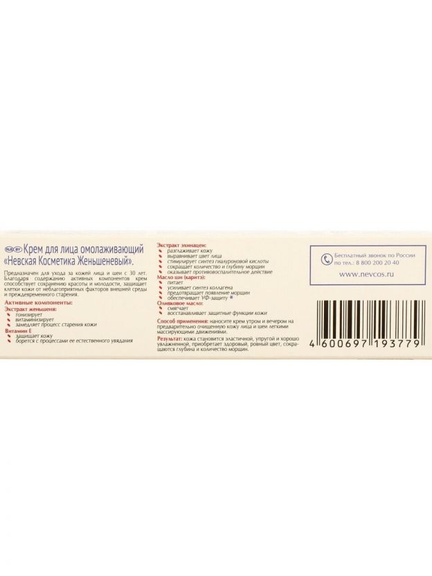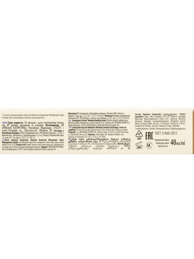 Крем для лица, Невская косметика, Женьшеневый, омолаживающий, 30+, для всех типов кожи, 40 мл