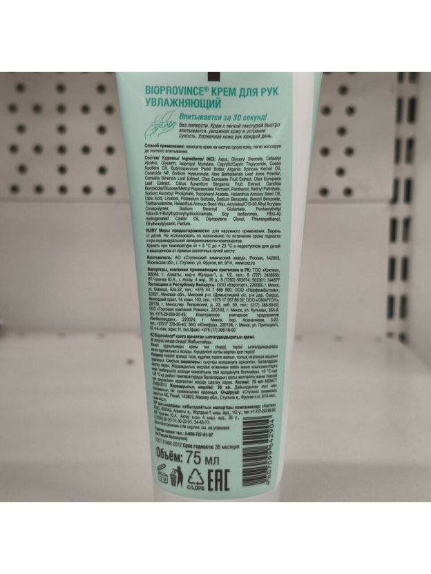 Крем для рук BioProvince обеспечивает необходимое увлажнение кожи рук.