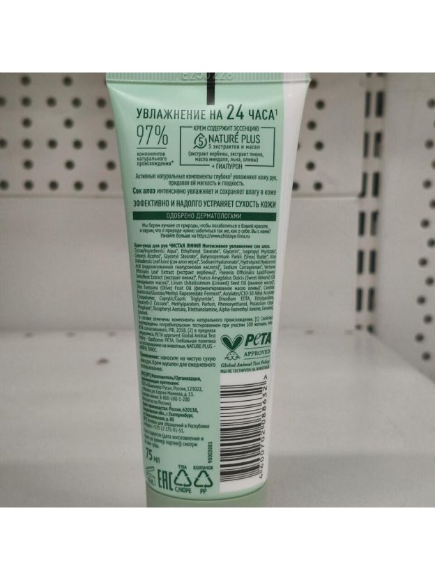 Крем для рук, Чистая линия, Интенсивное увлажнение, 75 мл