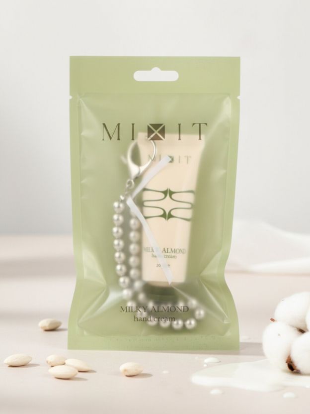 Крем для рук Mixit Silver Keychain 20 мл с ароматом молочного миндаля и стильным брелоком — забота о коже в любом месте, всегда под рукой.