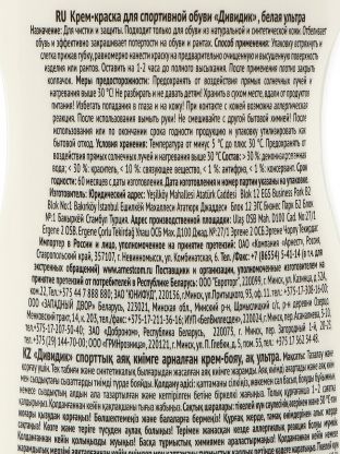 Крем-краска Дивидик для белой спортивной обуви — быстрое восстановление цвета и защита от пятен, объём 62 мл, подходит для всех типов кожи и текстиля.