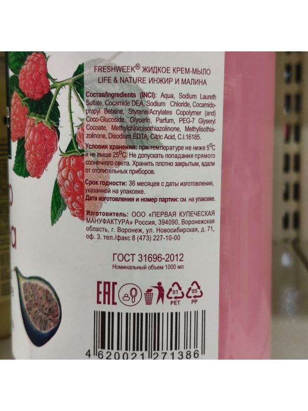 Крем-мыло Freshweek Life&Nature - это отличное средство для ежедневного ухода за кожей рук. Оно содержит натуральные компоненты, такие как экстракт инжира и малины, которые питают и увлажняют кожу, делая ее мягкой и гладкой.