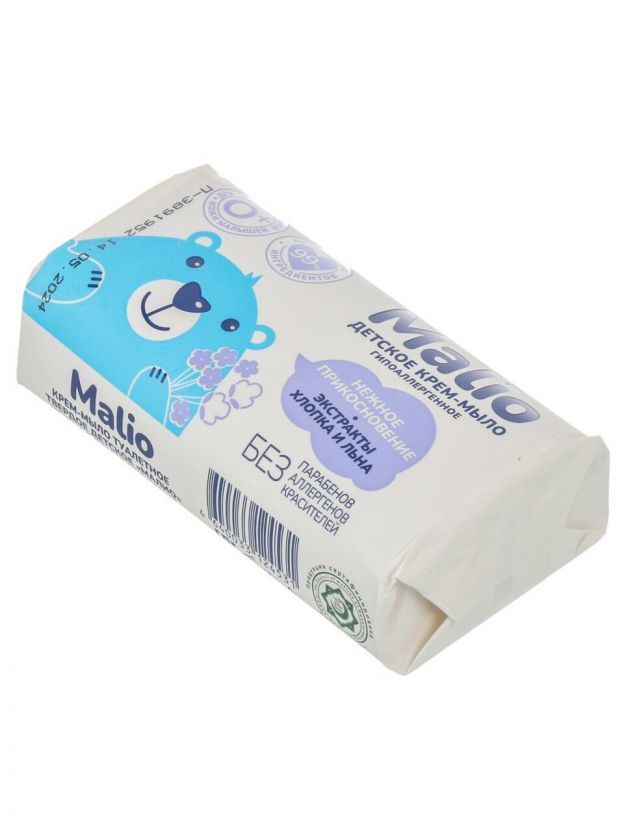 Детское крем-мыло Malio имеет натуральный состав, чтобы обеспечить безопасность и заботу о коже вашего ребенка с первых дней жизни. Нежное мыло содержит экстракты хлопка и льна, которые интенсивно питают и смягчают кожу, восстанавливают липидный барьер и ускоряют процесс ее регенерации.