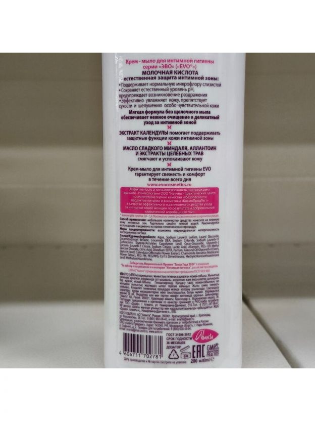 Специально разработан для ухода за нежной и чувствительной кожей интимных зон. Содержит масло миндаля, аллантоин, экстракты целебных трав и молочную кислоту. Мягкая формула с молочной кислотой не содержит щелочного мыла, деликатно очищает, сохраняет естественный уровень pH кожи и предотвращает раздражение и сухость. Жидкое мыло для интимной гигиены для интимной гигиены «evo» дарит ощущение комфорта, мягкости и чистоты на весь день. Рекомендовано врачами-гинекологами и дерматолагами для ежедневной интимной гигиены женщин любого возраста.