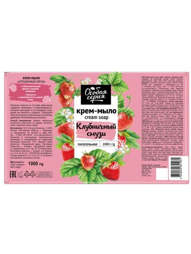Крем-мыло для рук "Особая серия" Клубничный смузи.