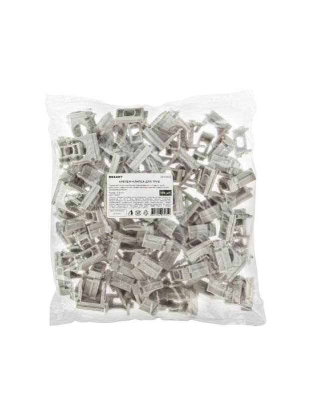Крепеж-клипса для труб, 100 шт, диаметр 20 мм, серый, Rexant, 28-0120-2