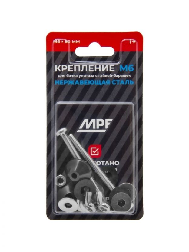 Крепление для унитаза к бачку, 2 шт, 80 мм, М6, с барашком, индивидуальная упаковка, MasterProf, ИС.131591