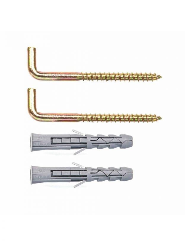 Комплект предназначен для установки водонагревателя - это простой и надежный способ крепления сантехники. Крепление производится в два шага: сначала в предварительно просверленное отверстие устанавливается дюбель как промежуточное звено, затем осуществляется сам крепеж.