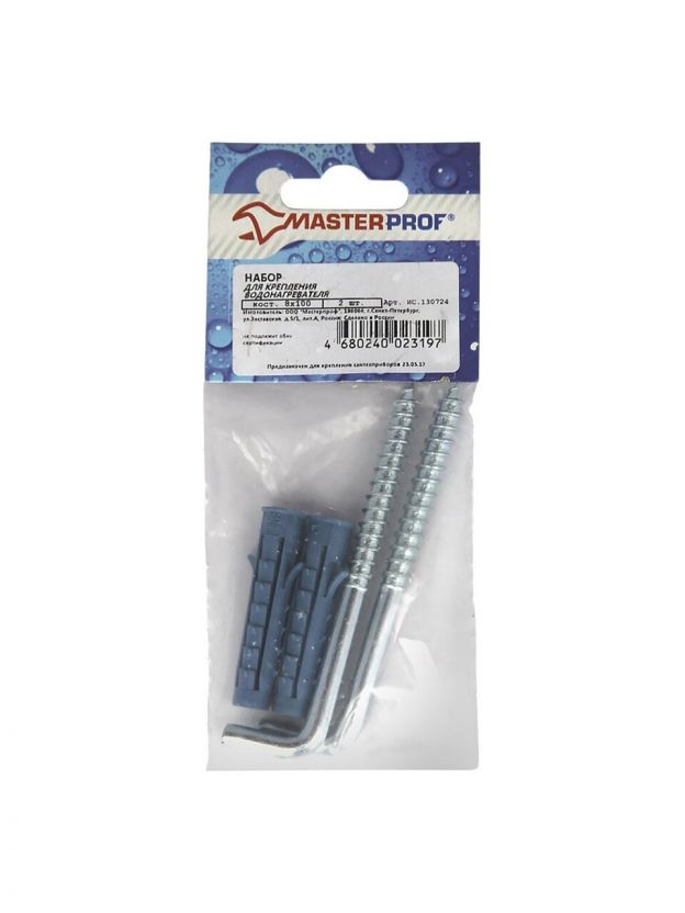 Крепление для водонагревателя, 2 шт, 8 х 100 мм, индивидуальная упаковка, MasterProf, ИС.130724