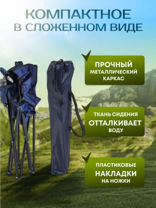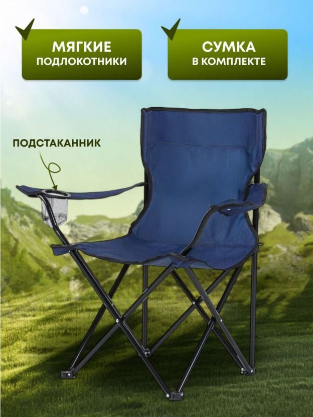 Модель выполнена из прочного полиэстера 600D, который отличается высокой износостойкостью и простотой в уходе. Металлический каркас гарантирует надежность и долговечность, выдерживая нагрузку до 100 кг. Синий цвет обивки подчеркнет стиль и свежесть любого отдыха на природе. Встроенный подстаканник позволяет всегда держать напиток под рукой, а наличие подлокотников и мягкой спинки обеспечивает дополнительное удобство. Кресло легко складывается и занимает минимум места при хранении и транспортировке.