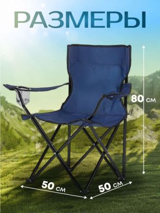 Кресло складное 50х50х80 см, синее, полиэстер 600D, с подстаканником, 100 кг, Green Days, YX-1048-19-3933
