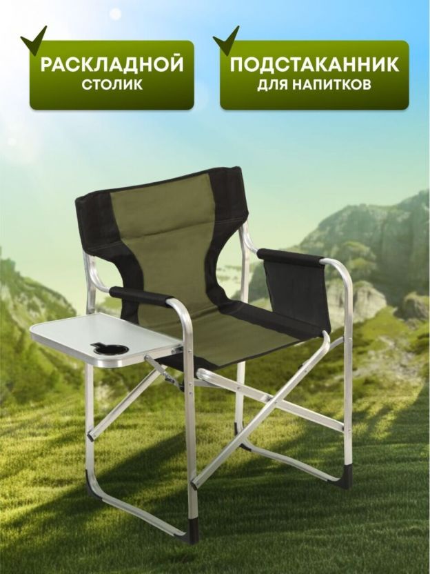 Кресло складное 55х60х82 см, черно-зеленое, ткань, со столиком, 100 кг, Green Days, YTDC024