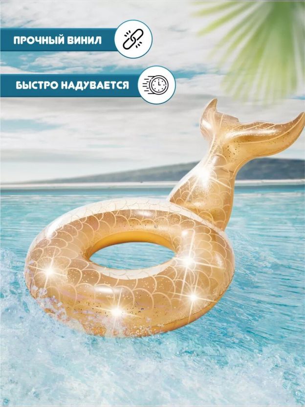 Надувной круг Intex «Русалка» предназначен для детей старше 9 лет. Модель имеет длинный хвост, похожий на китовый. Окрашенное безопасными стойкими пигментами изделие сохраняет яркость и первоначальный вид в течение всего срока эксплуатации. Круг обеспечивает безопасность ребенка в процессе купания в бассейне и море. Модель характеризуется высокой прочностью и устойчивостью к износу. Максимальная нагрузка равна 100 кг. Для изготовления используется винил высокого качества. Материал мало подвержен проколам, ударам, повреждению от интенсивного трения. Круг имеет мягкие швы, не травмирующие кожу.