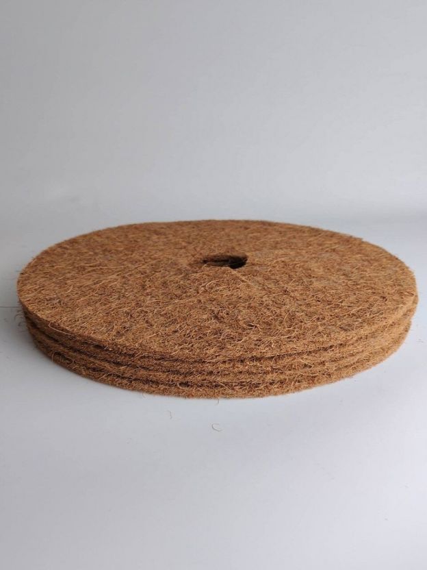 В упаковке 4 круга диаметром 20 см, толщина каждого — 10 мм. Натуральное кокосовое волокно, сезон использования: весна–осень.