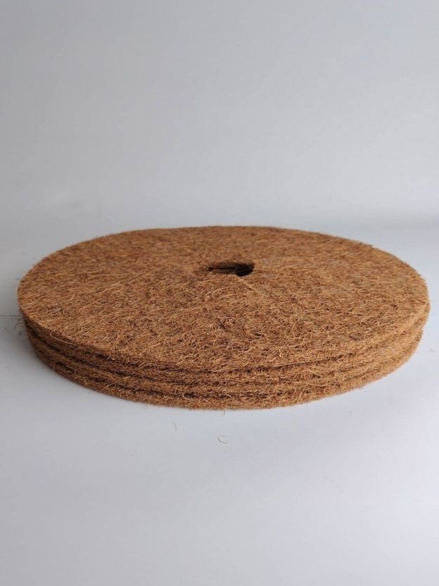 В упаковке 4 круга Flaxstor диаметром 30 см, толщина 10 мм, материал — 100% натуральное кокосовое волокно, производство — Россия.