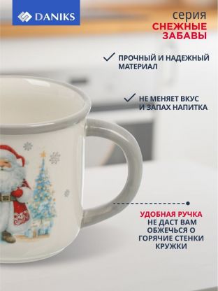 Кружка доломит 350 мл Daniks «Снежные забавы» — идеальный подарок на Новый год: зимний дизайн, подарочная упаковка, универсальный объём для дома и офиса.