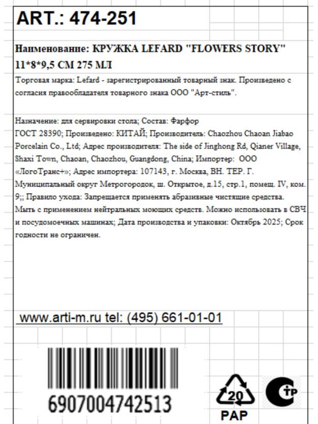 Если вы ищете, чем отличается фарфоровая кружка от керамической, обратите внимание: фарфор легче и тоньше, сохраняет температуру напитка дольше и не впитывает запахи. Кружка Lefard Flowers Story подходит для ежедневного использования — её можно мыть в посудомоечной машине и разогревать напитки в СВЧ. Это удобно для дома, офиса или дачи, особенно если важна простота ухода и долговечность.