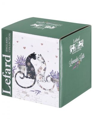 Кружка Lefard из коллекции «Лавандовые коты» — это не просто посуда, а элемент современного декора и заботы о себе. Белый фарфор с изящным рисунком кошек на фоне лаванды поднимает настроение и создает уют в любой обстановке. Благодаря объему 330 мл (округленно 350 мл), кружка подходит для чая, кофе, какао — идеальный выбор для ежедневного использования или для подарка женщине любого возраста.