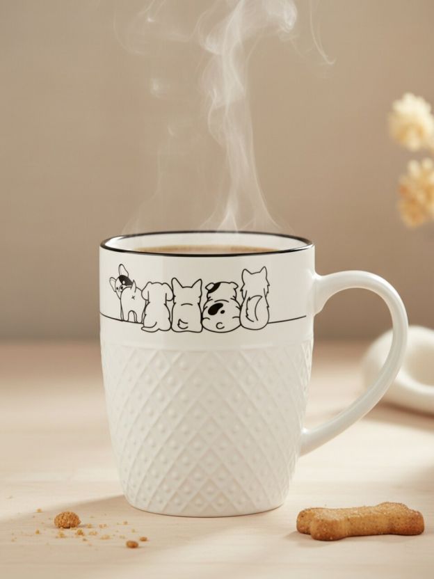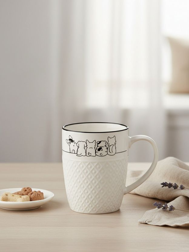 - Уникальный рисунок с щенками — стильный акцент для любого интерьера, выделяет кружку среди стандартных вариантов.