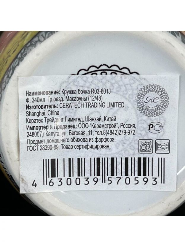 Кружка керамика, 340 мл, Макаруны, R05/607J/R03-601J, в ассортименте