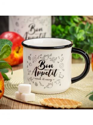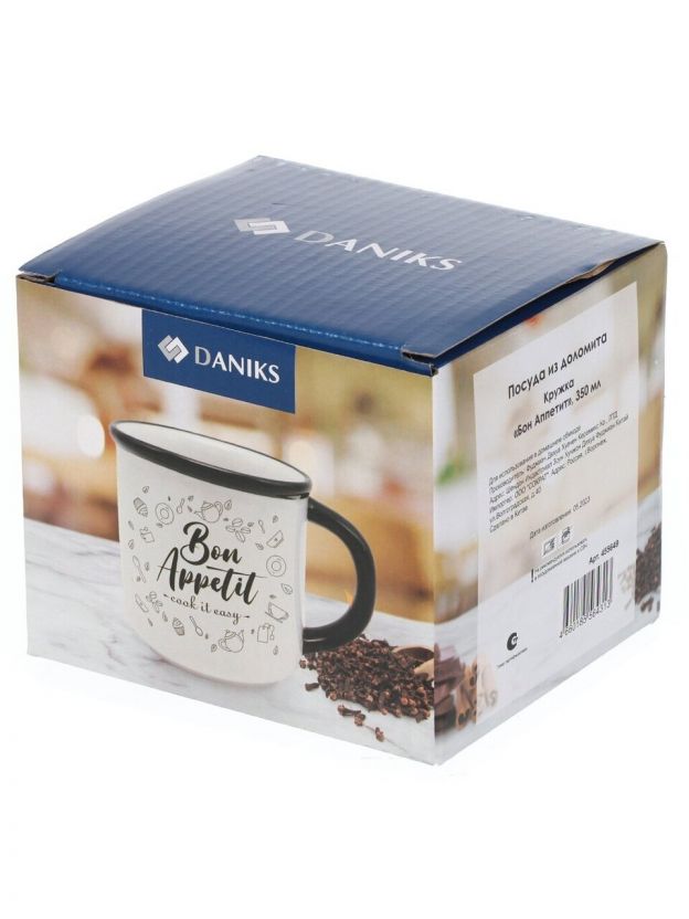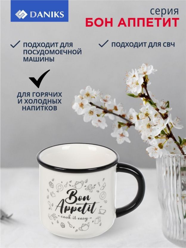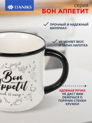 Керамическая кружка Daniks «Бон Аппетит» 350 мл — стильный выбор для дома и офиса: подходит для СВЧ, легко моется, универсальный дизайн для любого интерьера.