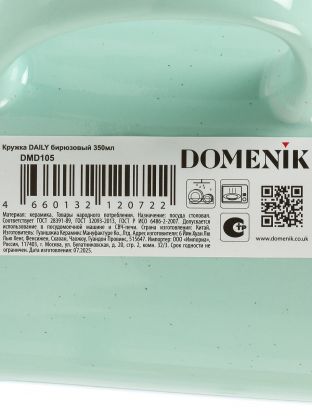 Керамическая кружка Daily Domenik 350 мл — это удачный выбор для тех, кто ищет недорогую кружку для дома или офиса. Благодаря универсальному объёму и прочному материалу изделие подойдёт для ежедневного использования: керамика хорошо держит температуру напитка, не впитывает запахи и легко моется в посудомоечной машине. Если вы спрашиваете, какую кружку выбрать для подарка женщине или девочке — обратите внимание на стильный бирюзовый цвет и лаконичный дизайн без рисунка. Такой аксессуар будет уместен и на рабочем столе, и на кухне.