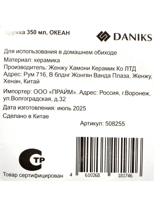 Daniks «Океан» — оптимальный выбор: объем 350 мл, керамика без эмали, можно мыть в посудомоечной машине и использовать в микроволновке.