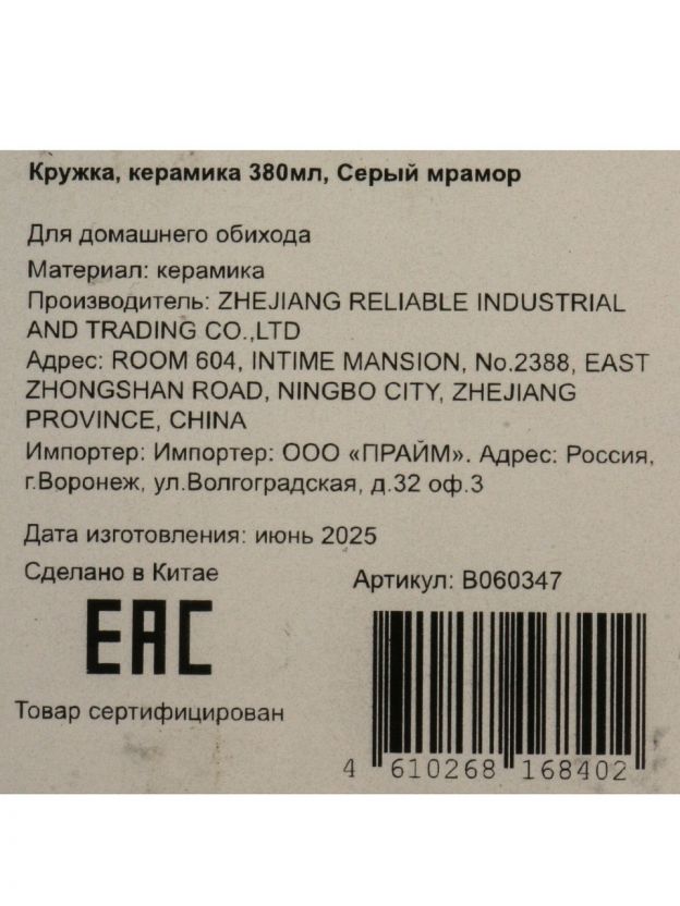 Кружка керамическая 380 мл «Серый мрамор» — выбор для тех, кто ищет стильную и практичную посуду для дома или в подарок. Керамика сохраняет температуру напитков, не выделяет вредных веществ и подходит для частого использования. Благодаря отсутствию эмалированного покрытия, изделие не трескается со временем, а гладкая поверхность легко очищается даже в посудомоечной машине.