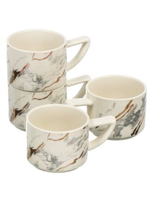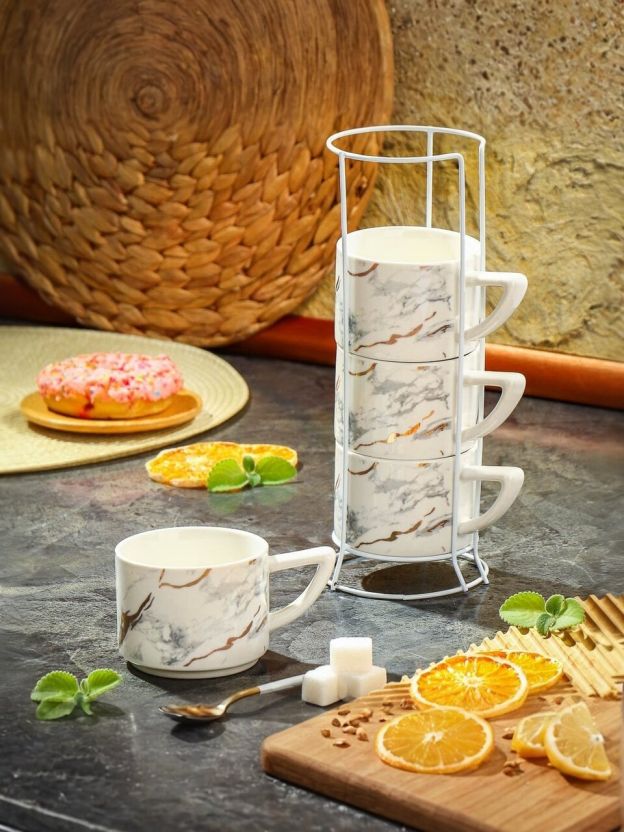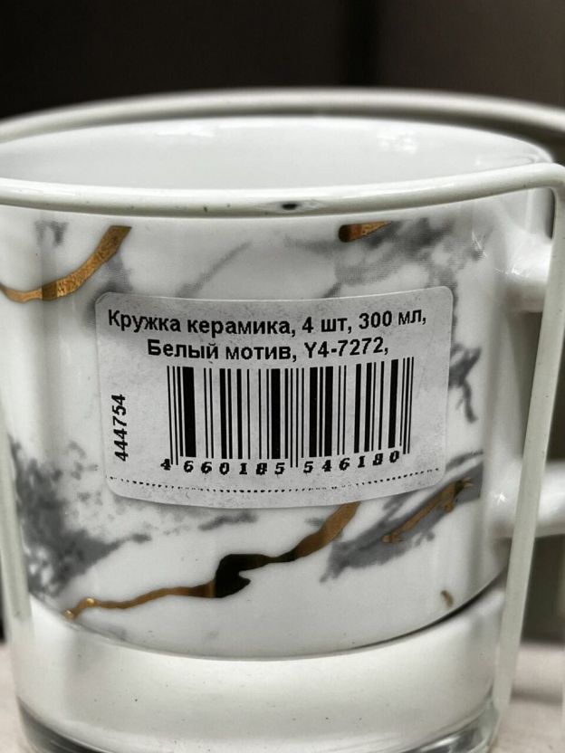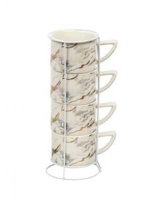 Кружка керамика, 4 шт, 200 мл, Белый мотив, Y4-7272, металлическая подставка