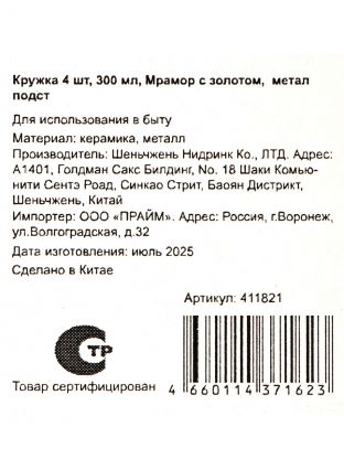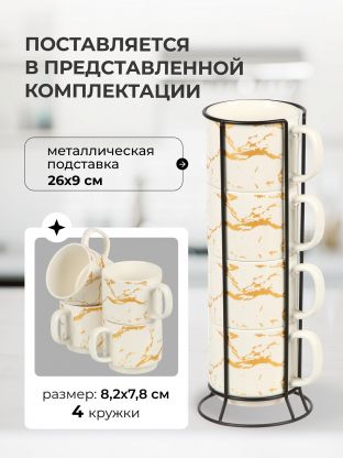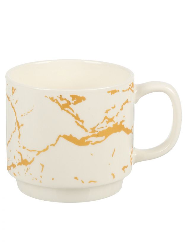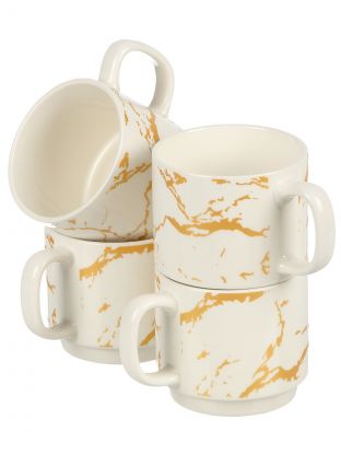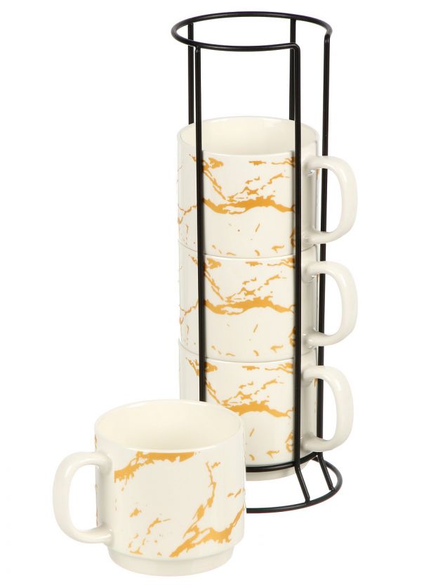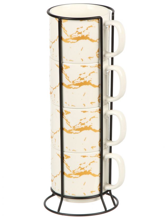 Кружка керамика, 4 шт, 300 мл, Мрамор с золотом, Y4-5347, белая, металлическая подставка
