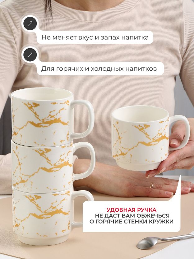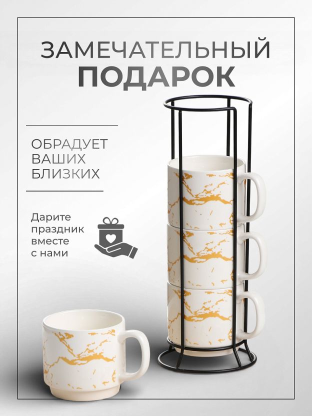 Выбирайте набор керамических кружек «Мрамор с золотом» — выгодное предложение для тех, кто ценит стиль, удобство и универсальность. Оформите заказ сейчас и получите элегантный комплект с доставкой по выгодной цене.