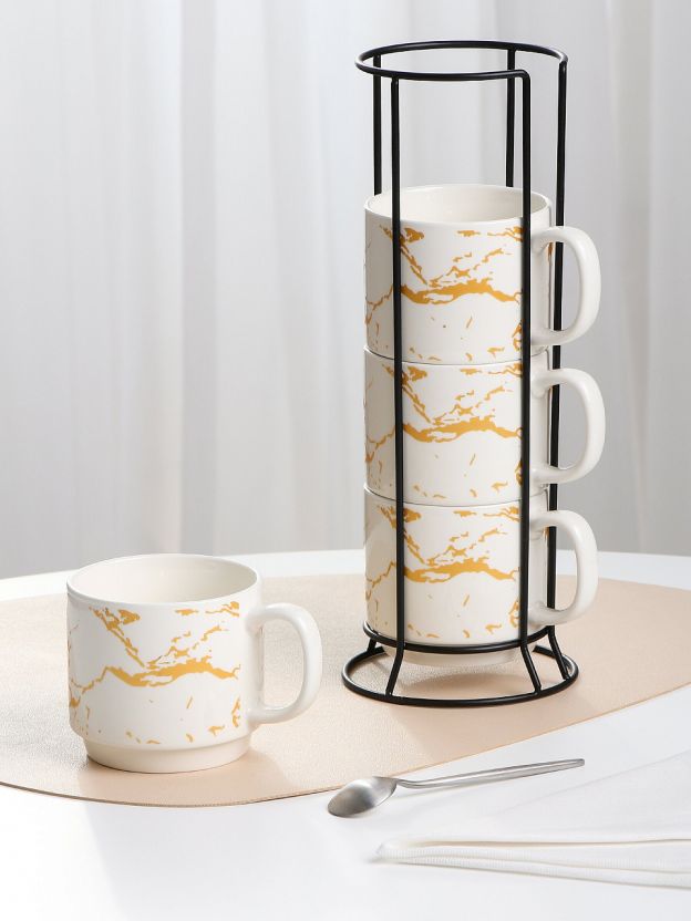 Ищете, какую кружку выбрать для стильной сервировки или оригинального подарка? Набор керамических кружек «Мрамор с золотом» — это гармония эстетики и практичности. Белая керамика с мраморным рисунком и золотыми акцентами подчёркивает современный стиль, а металлическая подставка экономит место на кухне. В отличие от обычных кружек без подставки, этот комплект удобно хранить и красиво презентовать гостям.