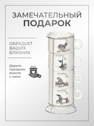 Чем выгоден набор из 4 кружек с подставкой?