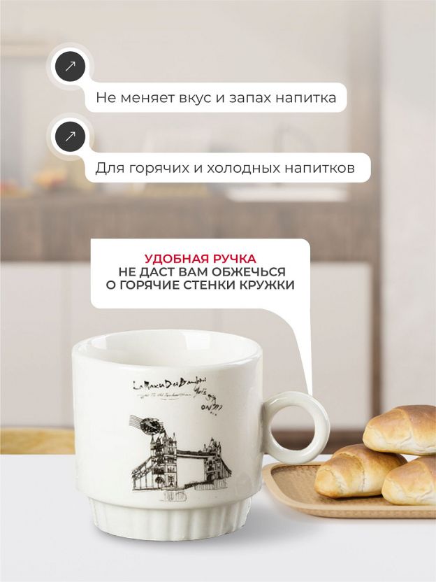 Набор керамических кружек «Вояж» — это оптимальное решение для тех, кто ищет недорогой и стильный вариант для чаепития или кофе-брейка. Благодаря объёму 300 мл и удобной форме, кружки подходят для горячих и холодных напитков, а металлическая подставка обеспечивает компактное хранение и порядок на вашей кухне. Дизайн с мотивами городов и лаконичными надписями делает этот комплект отличным выбором для современного интерьера.
