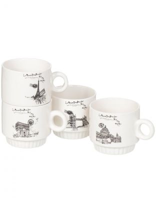- Практичный набор: 4 кружки по 300 мл из прочной керамики, можно мыть в посудомоечной машине и использовать в микроволновке