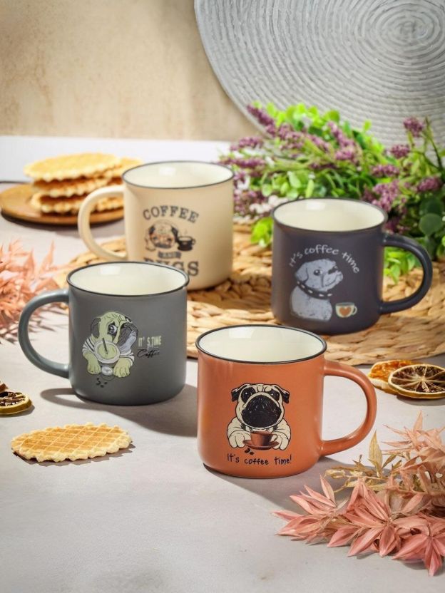 Набор керамических кружек Daniks «Догс», 4 шт по 325 мл — стильный подарок и решение для дома, дачи и офиса. Подарочная упаковка, универсальный дизайн, подходит для СВЧ и посудомоечной машины.