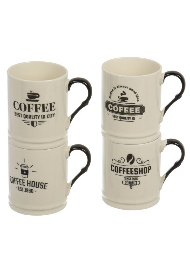 В наборе 4 кружки, каждая объёмом 375 мл (округлённо — 380 мл), без крышки, ситечка и ложки.