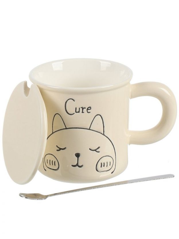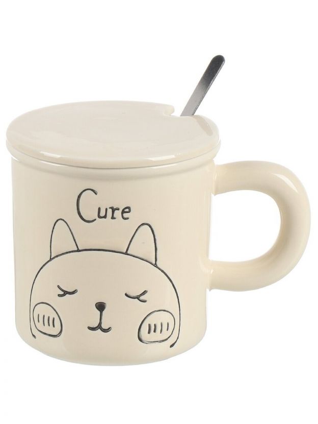 Кружка керамика, 400 мл, Смешные котята, с крышкой, с ложкой, 9.4х9.4 см, с крышкой, Y4-8975, в ассортименте