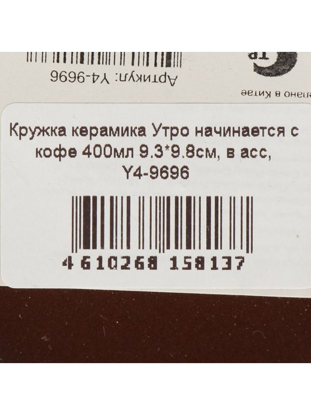 Кружка керамика, 400 мл, Утро начинается с кофе, 9.3х9.8 см, Y4-9696, в ассортименте