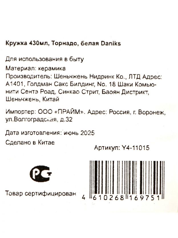 Керамическая кружка Daniks Торнадо 430 мл — стиль и практичность для дома и офиса. Удобный объём, современный дизайн, подходит для СВЧ и посудомоечной машины.