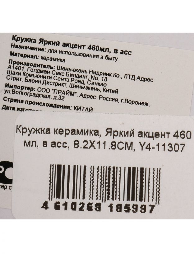 Кружка керамика, 460 мл, Яркий акцент, 8.2х11.8 см, Y4-11307, в ассортименте