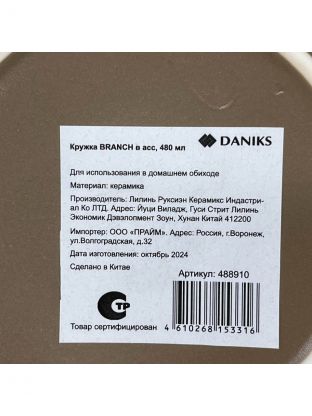 Кружка керамика, 480 мл, Branch, Daniks, BR398, в ассортименте