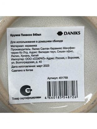 Кружка керамика, 540 мл, Пикассо, Daniks