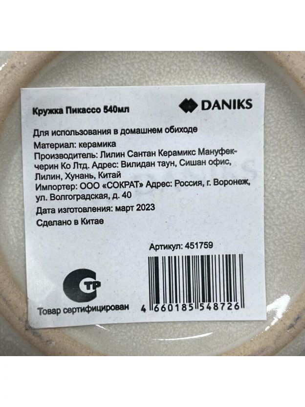 Керамическая кружка Daniks «Пикассо» 540 мл: стильный выбор для дома и офиса, подходит для СВЧ и посудомойки. Универсальное решение для подарка и повседневного использования.