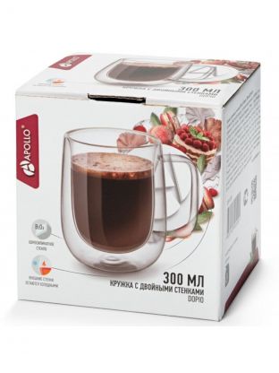 Кружка стекло, 300 мл, Dopio, двойные стенки, Apollo, DOP-300, бесцветная